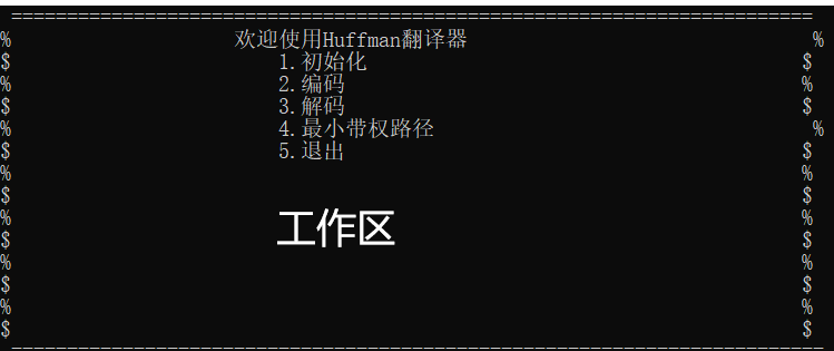#include"head.h" HuffmanTree create_HuffmanTree(int n) { int *wet = (int*)malloc(sizeof(int) *MAXSIZE); char *value = (char*)malloc(sizeof(char)*MAXSIZE); int weight; char v; for (int i = 0; i < n; i++) { cout << "请输入节点" << i << "的值和权重:"; cin >> v; cin >> weight; *value = v; *wet = weight; value++; wet++; } int total = 2 * n - 1; HuffmanTree HT = (HuffmanTree)malloc(total * sizeof(HTNode)); if (!HT) { printf("HuffmanTree malloc faild!"); exit(-1); } int i; wet = wet - n; value = value - n; for (i = 0; i < n; i++) { HT[i].parent = -1; HT[i].lchild = -1; HT[i].rchild = -1; HT[i].weight = *wet; HT[i].value = *value; wet++; value++; } for (; i < total; i++) { HT[i].parent = -1; HT[i].lchild = -1; HT[i].rchild = -1; HT[i].weight = 0; } int min1, min2; for (i = n; i < total; i++) { select_minium(HT, i, min1, min2); HT[min1].parent = i; HT[min2].parent = i; HT[i].lchild = min1; HT[i].rchild = min2; HT[i].weight = HT[min1].weight + HT[min2].weight; } return HT; }